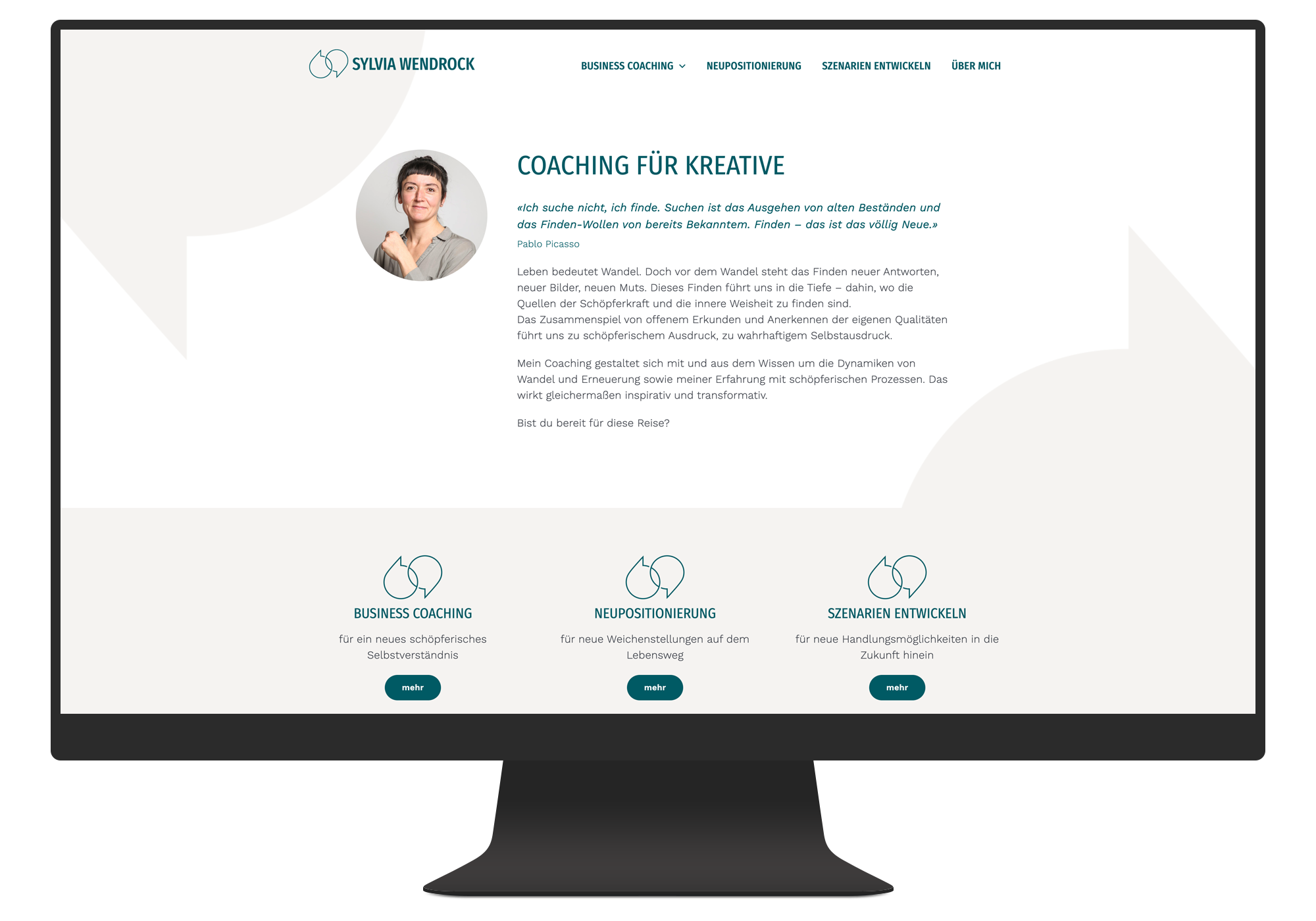2024 wurde das Corporate Design angepasst. Die Website soll nun gezielt auf das Coaching-Angebot von Sylvia Wendrock verweisen. Die Farbigkeit und Typografie tritt zurück und alles wirkt insgesamt noch reduzierter. Aus der Wortmarke Denkpartnerin wurde eine Namensmarke