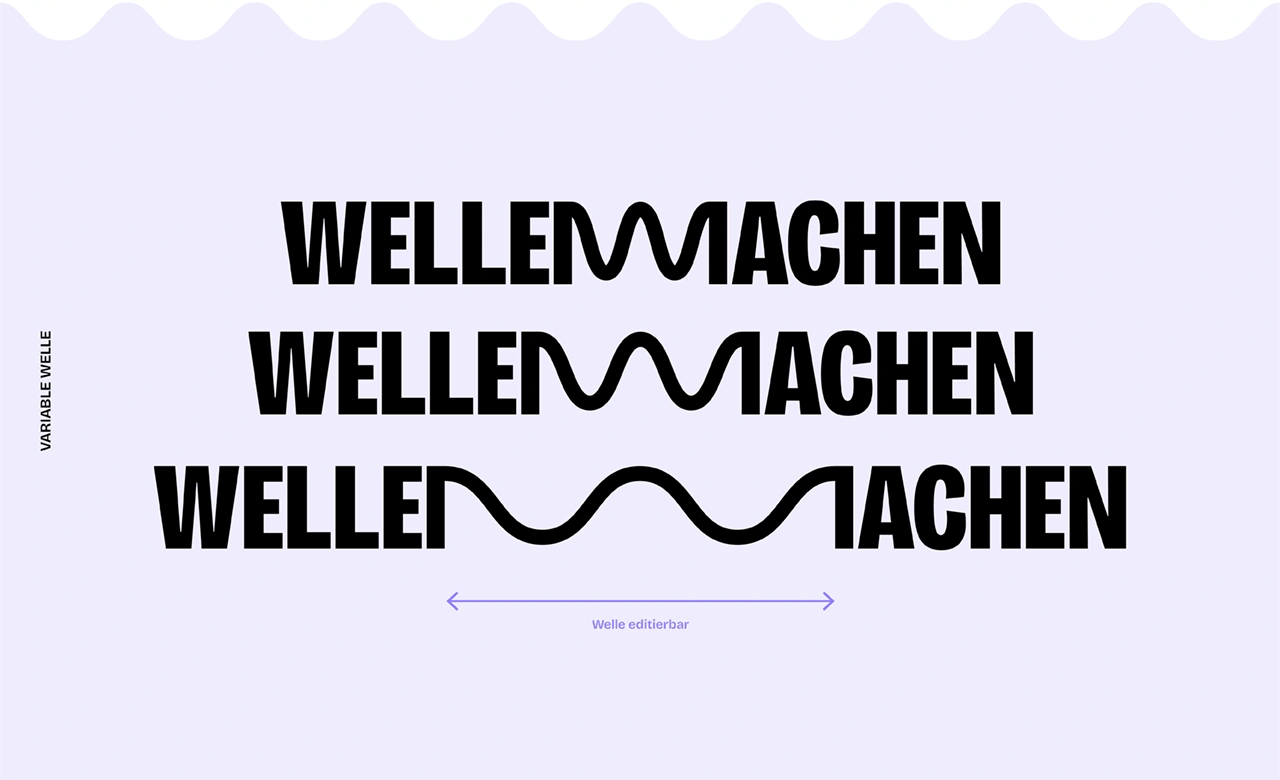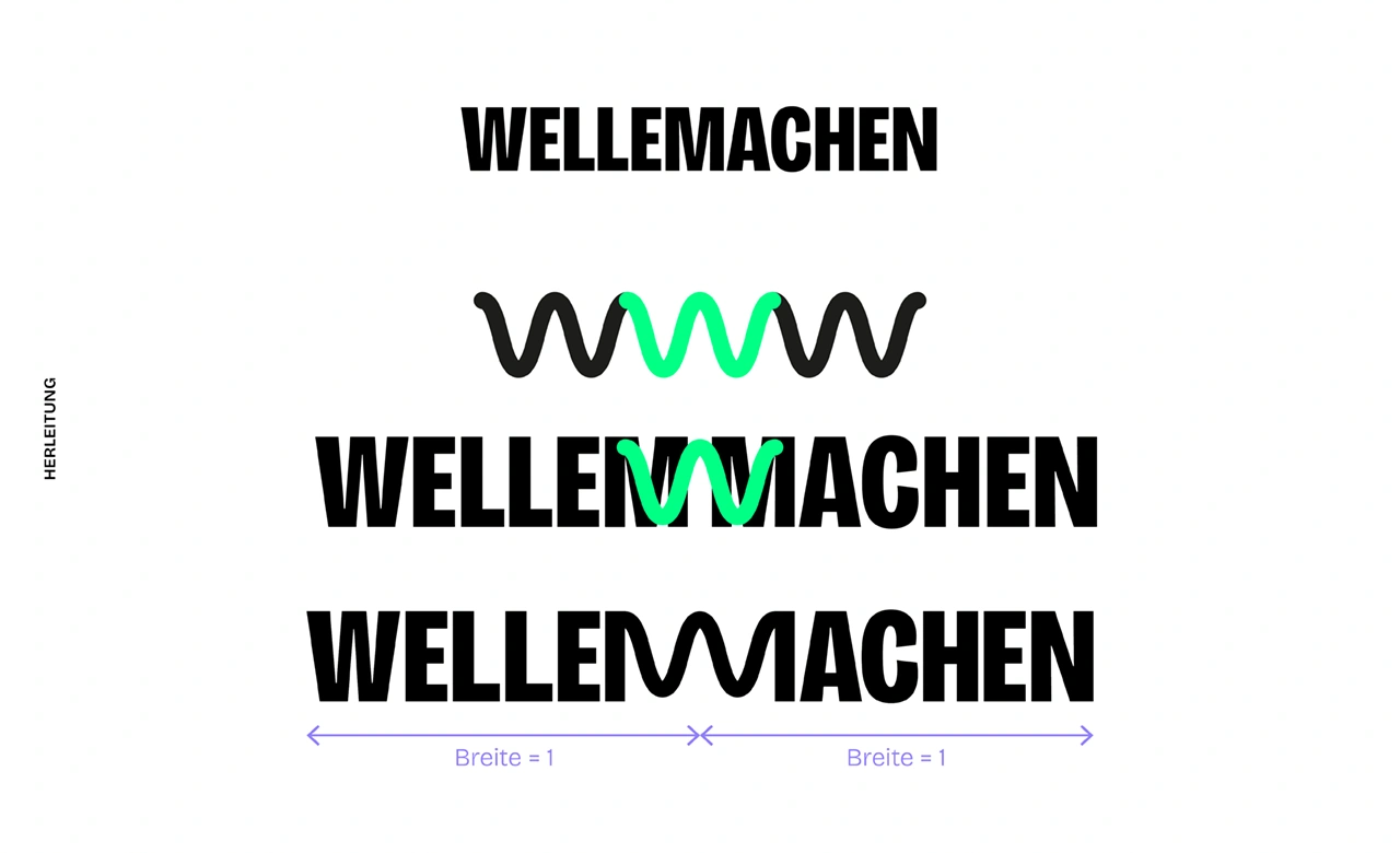 WELLEMACHEN ist ein eigenständiges Wort/Verb. Die Verbindung beider Wörter ist die Idee dieses Ansatzes. Auf der Basis der grafischen Darstellung der (Sound-) Welle wird das M zur Welle und geichzeitig auch zum W. Das hieraus abgeleitete Signet ist schön markant und lässt viele Deutungen zu (M, W, Welle, Sound, Krone, Bewegung). Die Welle ist immer unterschiedlich und deshalb gibt es verschiedene Ausführungen der Wellenform. Die Wellenform dient auch als ideales Gestaltungselement für Muster, Rahmen und Linien.